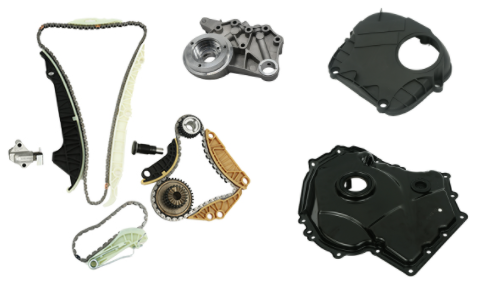 1. trzy ślizgi łańcucha rozrządu (w tym górny i boczny ślizg wydłużone, uniemożliwiające przeskoczenie łańcucha