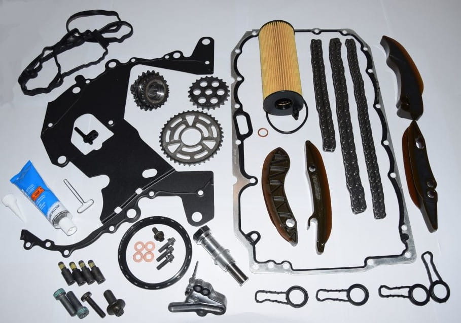 Komplet naprawczy łańcucha rozrządu firmy IWIS (dostawca BMW) oraz części oryginalne BMW