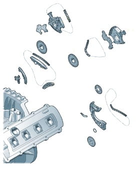Zestaw składa z części firmy IWIS, części montowane przez AUDI na pierwszy montaż